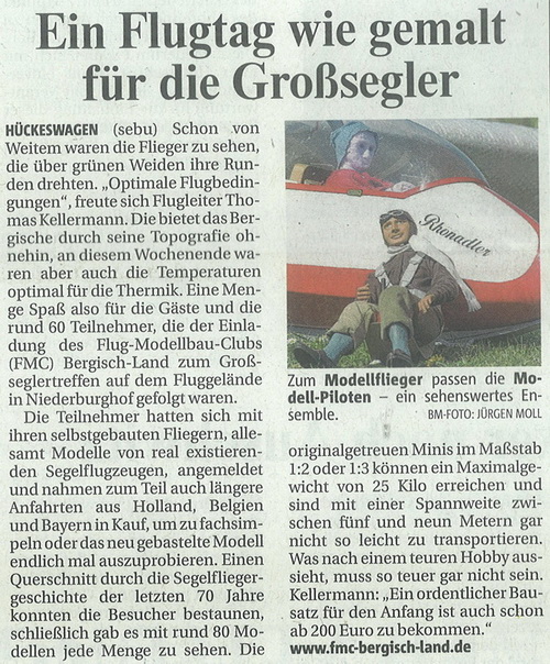 Ein Flugtag wie gemalt - Ein Bericht aus der Bergischen Morgenpost vom 9.5.2011 zum Großseglertreffen 2011
