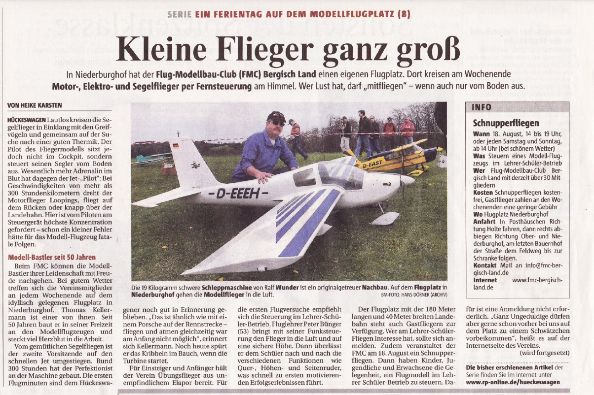 Kleine Flieger ganz groß - Ein Bericht aus der Bergischen Morgenpost vom 3.8.2012 zum Schnupperfliegen 2012
