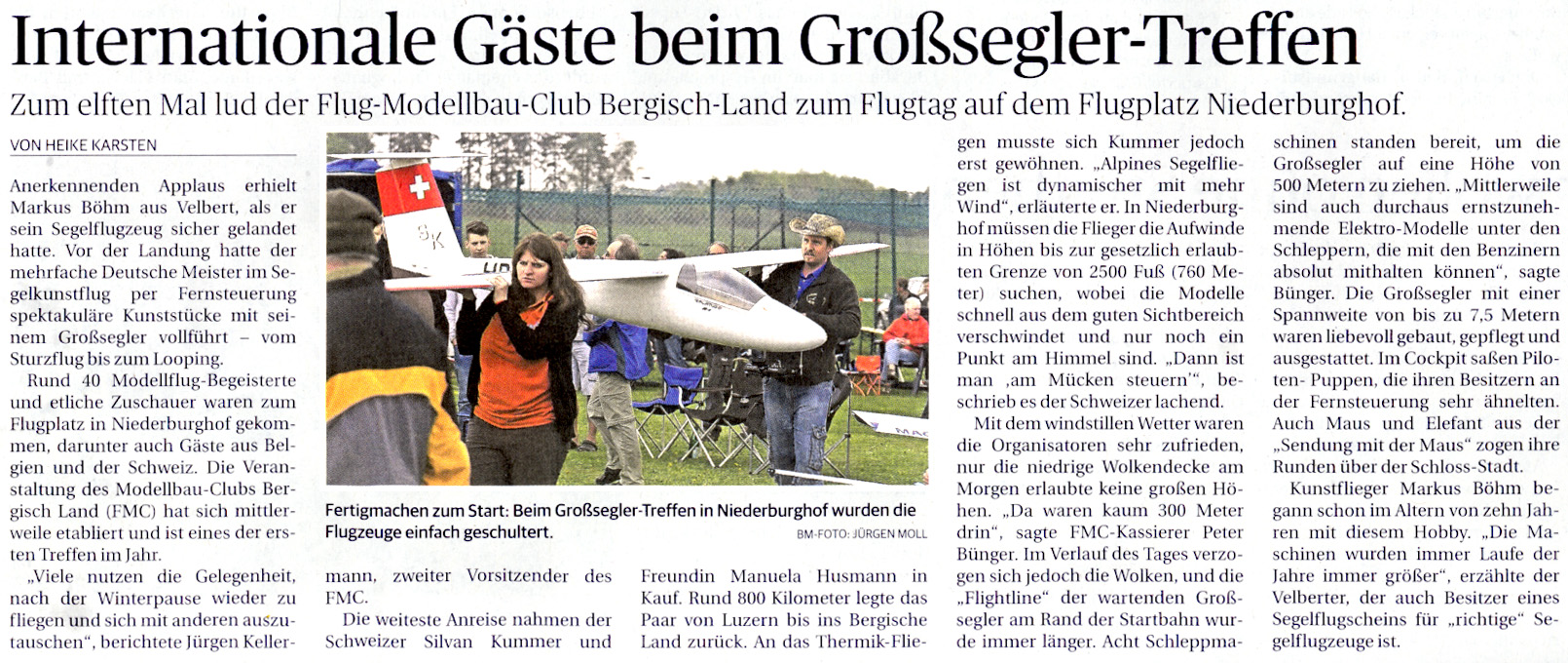 Internationale Gäste beim Großsegler-Treffen - Ein Bericht aus der Bergischen Morgenpost vom 28.4.2014 über unser Großseglertreffen 2014