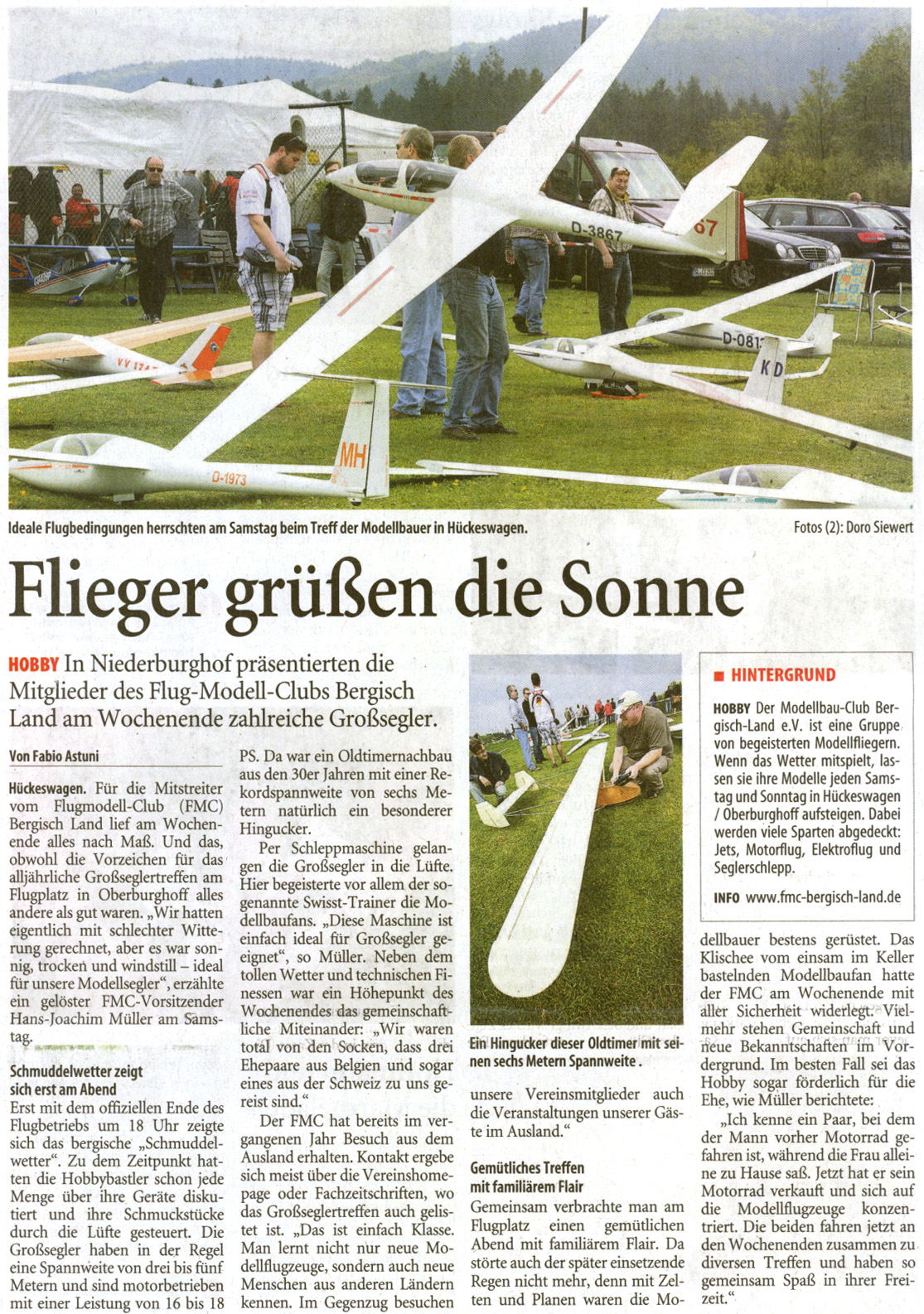 Flieger grüßen die Sonne - Ein Bericht aus dem Remscheider Generalanzeiger vom 28.4.2014 über unser Großseglertreffen 2014